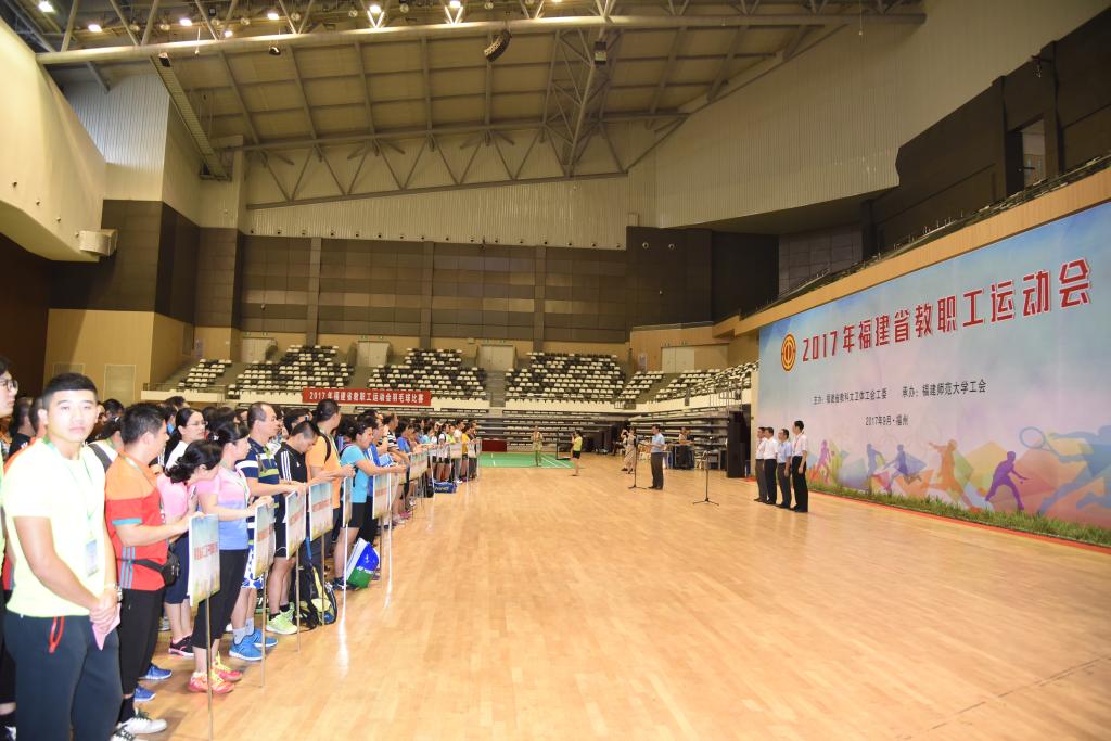 9月23日至24日,由福建省教科文卫体工会工委主办,福建师范大学承办的2017年福建省教职工运动会在福建省大学生体育馆举行,来自全省教育系统的32支代表队近五百人参加了羽毛球团体、扑克牌80分和趣味比赛3个项目的角逐。