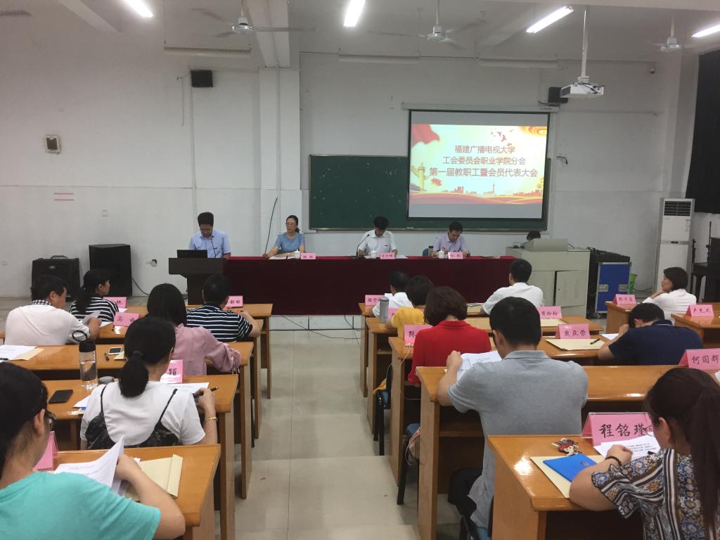 5月31日下午,福建广播电视大学工会委员会职业学院分会第一届教职工暨工会会员代表大会在博厚楼新阶梯教室隆重召开。会议由职业学院党总支书记吴宁晖主持,校工会常务副主席游璇到会指导。