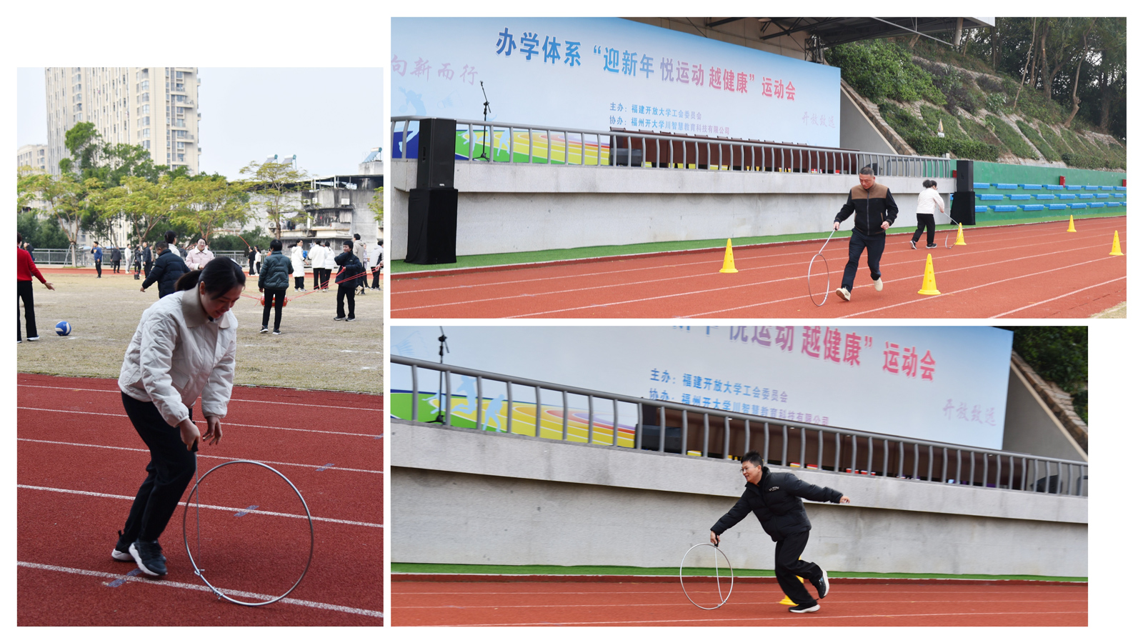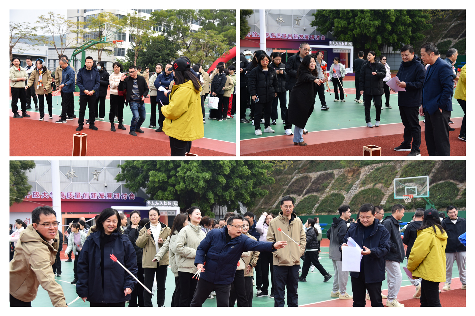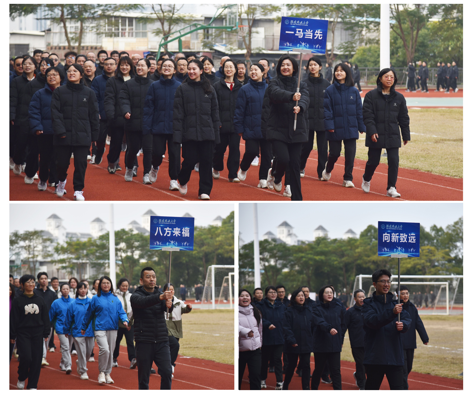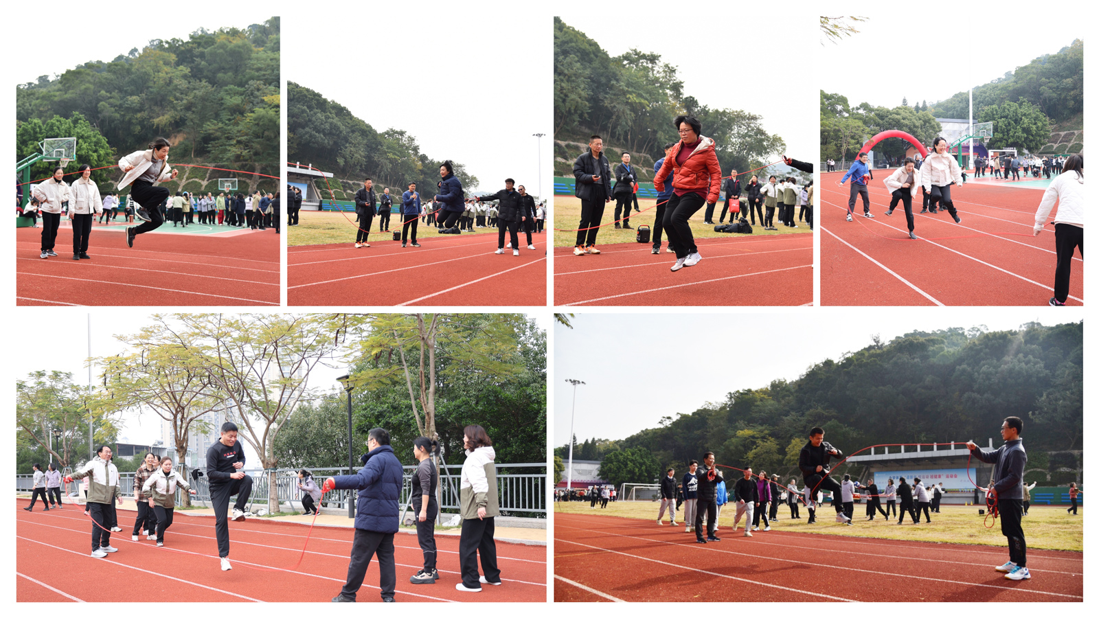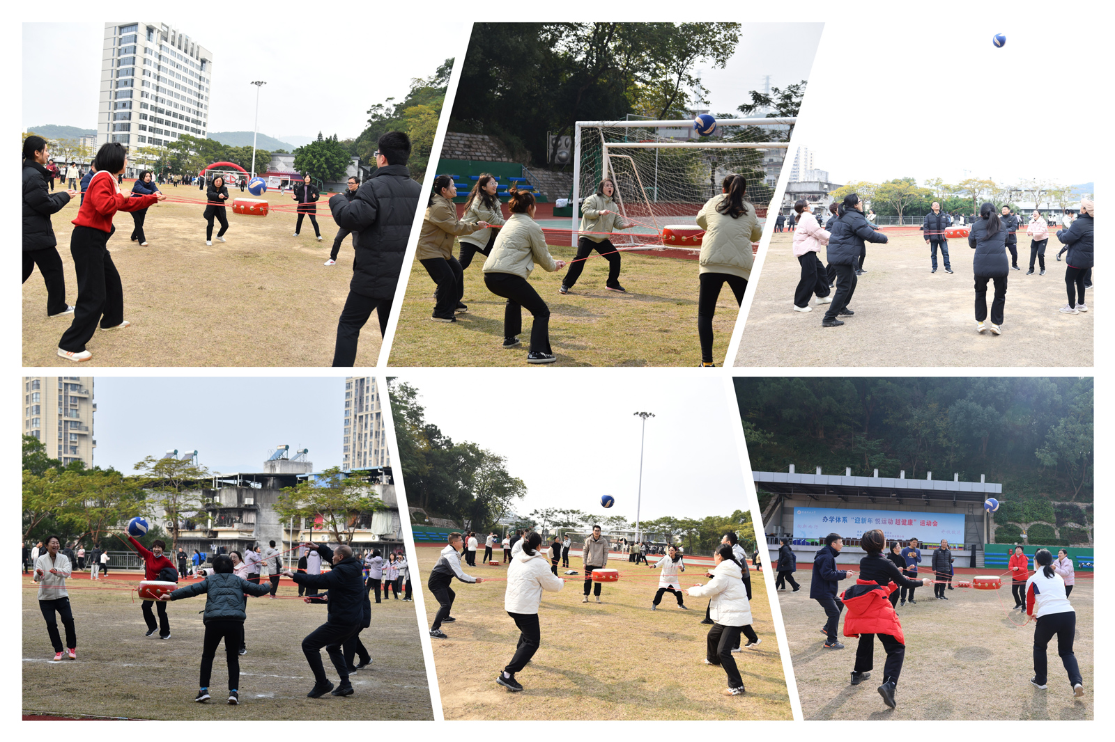 “迎新年悦运动越健康”运动会在桂山校区举办,近500名教职工参加比赛。校领导庄莉